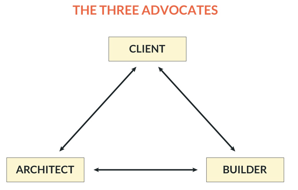 The relationships between architects, builders, and clients are closely related. Both the architect and the builder are working together to reach the common goal of building your dream house. They form a triangular relationship with the clients. One cannot function well without the help of the other. A builder needs an architect as much as the architect needs the builder. They are connected to each other, so if they do well, they can achieve an effective dynamic and improve customer satisfaction.